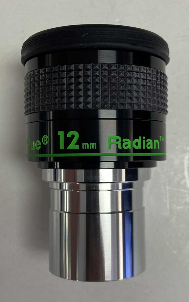 This is a used 12mm Radian eyepiece in excellent condition. The optics are clean and the body is free of any marks or scratches. This includes both dust caps as well as the original box.