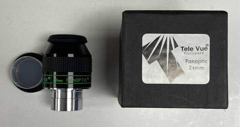 This is a used TeleVue 24mm panoptic eyepiece in excellent condition. The optics are clean and the body is free of any marks or scratches. This includes both dust caps as well as the original box.
