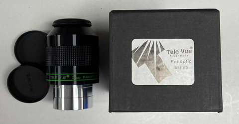 This is a used TeleVue 35mm panoptic eyepiece in excellent condition. The optics and body are clean and free of any marks. This includes both dust caps as well as the original box.