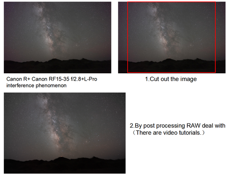 Due to the particularity of Canon R series micro-single optical path, aperture design and light incident Angle, slight dark angle interference will occur when using an interference filter such as the L-Pro clip filter for imaging.