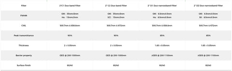 OIII:35nm±5nm/Ha:15nm±3nm |