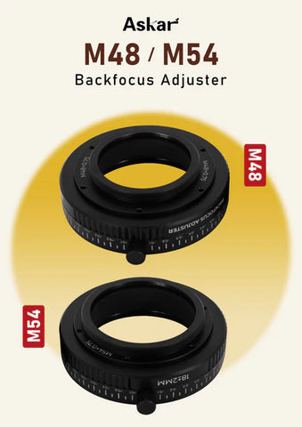• Enhanced Backfocus Control: Specifically designed for astronomical photography, the Askar Backfocus Adjuster ensures critical precision in adjusting backfocus, with a range of 16mm-20mm and fine-tuning capabilities of ±2mm. This is crucial for dealing with changes due to filter refraction or sensitive focusing requirements.
