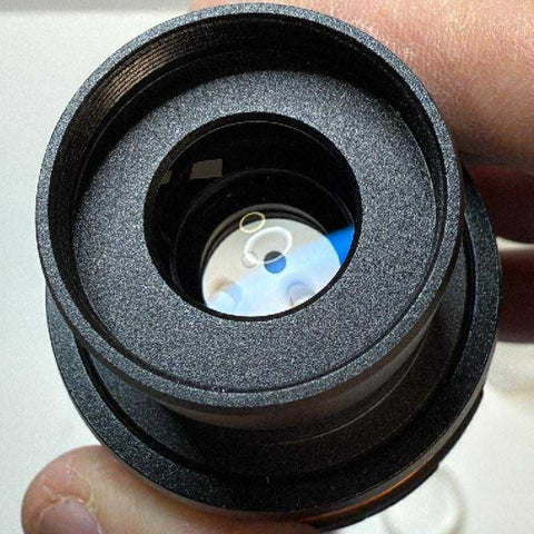 The X-Cel LX eyepiece body is made of black-anodized aluminum. The pop-up eyecups make it easy to adjust the height for different users. Turn them in one direction to extend the length, and the other direction to provide a flat surface, preferable to most eyeglass wearers. A treaded rubber grip around the center of the eyepiece barrel offers secure handling, even in moist conditions or with heavy gloves on. The 1.25” insert barrel is threaded to accept filters.