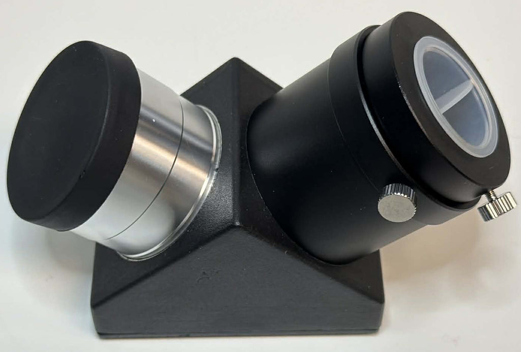 This comes with a 2" to 1.25" adapter for use with 1.25" eyepieces and both dust caps. It will only work with refractors and similar Maks that don't have a visual back.