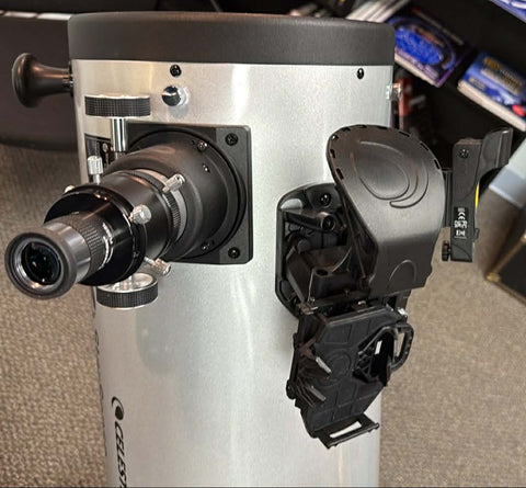 • Includes a 25mm Plössl eyepiece, a 2” Crayford focuser, the StarSense smartphone dock, a StarPointer™ red dot finderscope, an eyepiece rack, and a collimation tool.