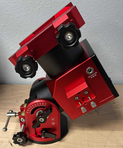 This ZWO AM5 mount comes with a 0-90° latitude adjustment range. For the first gear, adjust the pitch angle grip to achieve between 0° to 60°. For the second gear, loosen the hex-head screw and adjust the pitch angle grip to get between 45° and 90°. Not only does this allow astroimagers to use the AM5 in alt-azimuth mode, it also allows those in both low and high latitude locations to use this mount when in equatorial mode.