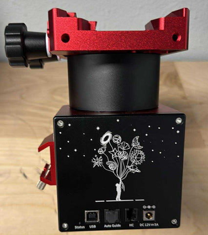 The incorporated Harmonic drive speed reducer and synchronous belt allow this mount head to have precision control. While a traditional equatorial mount requires counterweights for use, this ZWO mount's harmonic drive speed reducer and synchronous belt eliminate the need for counterweights, though they can be added if desired (an M12 thread interface is available for compatible, user-supplied counterweight shafts). Having this design allows for more accurate control and a reduction ratio of 300:1.