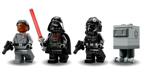 - 3 LEGO® Star Wars™ minifigures with weapons, plus a Gonk Droid – Darth Vader with a lightsaber, Vice Admiral Sloane and a TIE Bomber Pilot, each with a blaster pistol, plus a Gonk Droid LEGO figure