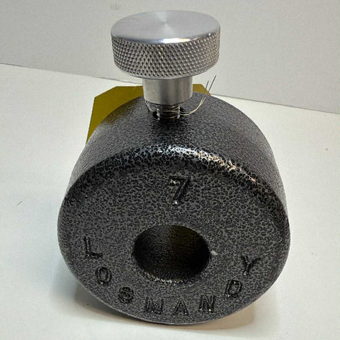 This is a 7-pound Losmandy counterweight in excellent condition. It has a couple of dings on it, but otherwise is in great shape. The center hole measures 31.44mm with our digital calipers.