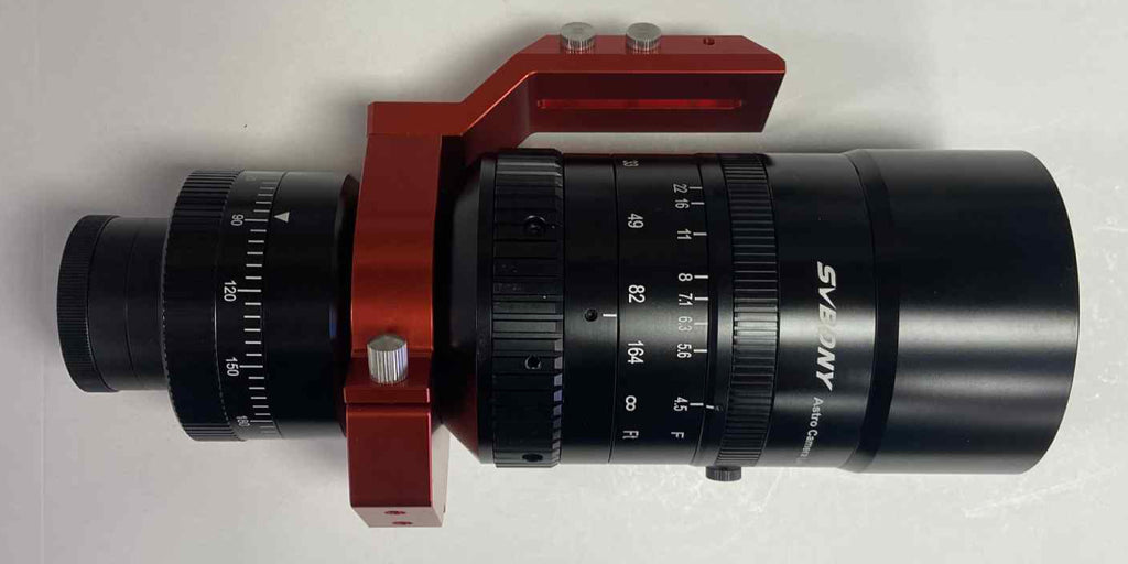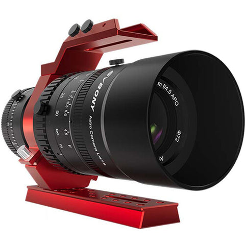 Attached to a camera and your favorite mount, the SV555 54mm f/4.5 APO Astrophotography Lens/Telescope from SVBONY becomes an astrograph for deep-sky object and planetary imaging. Its fully multicoated Petzval lens has five elements in three groups, with two made from extra-low dispersion glass. The fast f/4.5 maximum aperture captures a wide field and the rotatable lens tube makes it easy to select your framing. The SV555 has a 2" M48 x 0.75 female thread on the back and comes with a handle, bracket, and a 7.3" dovetail.