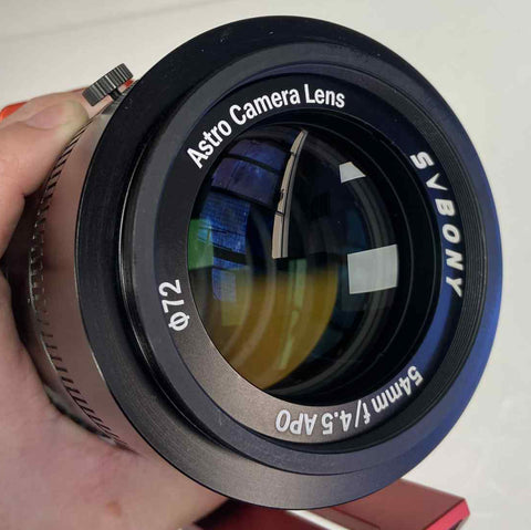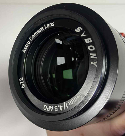 This is a used SvBony SV555 Astro Camera Lens in excellent condition. The optics are clean and the body is free of any marks or scratches. This includes a non-standard Askar LDP 300 dovetail bar instead of the original dovetail that this would typically come with. This includes only what you see in the photos and does not include the EAF mount kit, original dovetail plate, the soft padded case, or the tools/hardware.