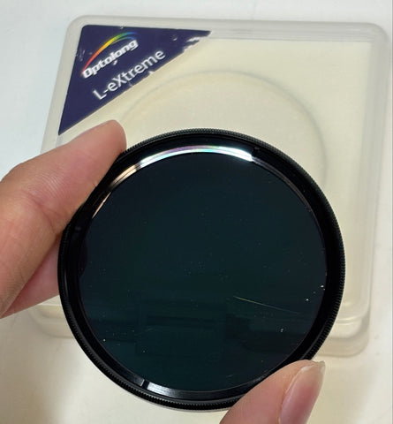 There is a scratch on the L-eXtreme optics and issues within the coatings of the L-Synergy optics which can be seen in the images provided. (Any dust you see in the photos is easily removable - it seems that these filters develop an electrostatic charge such that the dust in the air is just attracted to the filter.)