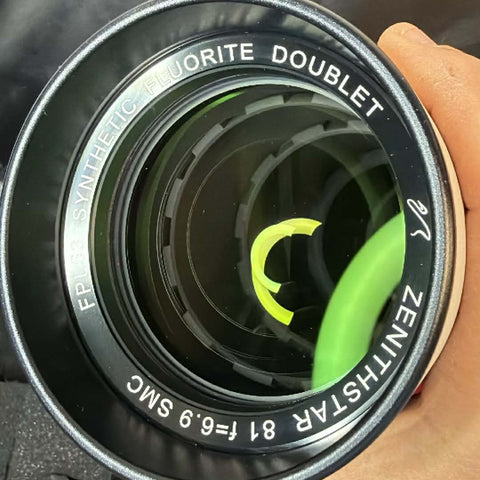This is a ZenithStar 81 in excellent condition. Both the optics and body are clean. There is a tiny spot on the edge of the objective; you can see it in the photos in between the "c" in synthetic and the "f" in fluorite.