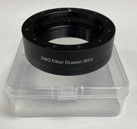 This is a used ZWO M54 2" filter drawer in excellent condition, with no marks, sleeks, or dings. This includes everything shown in the photos and includes the original jewel case.