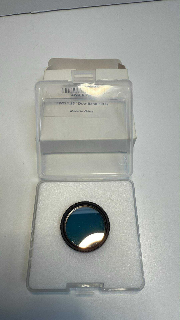 This is a used ZWO 1.25" Duo-Band filter in good condition. It has some dust and sleeks on the optical surface that we have not been able to clean. See the photos. We have taken this condition issue into consideration in the pricing, and it is therefore almost HALF-OFF.