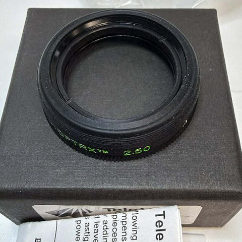 This is a used Tele Vue Dioptrx 2.5 astigmatism correcting lens. It is in excellent condition with clean optics. This includes the original instruction sheet, one dust cap, and comes in the original box.