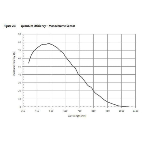 The heart of this color camera is a 1/3" CMOS sensor with 1.2 megapixels (1280x960) with a quantum efficiency (QE) of 75% and no fixed-pattern noise. The pixels are 3.75 μm in size, small enough for imaging solar-system objects but large enough to capture fainter objects such as nebulae, galaxies, and star clusters. The camera enables exposure times of 64 μs to 1000 s (16.67 minutes).