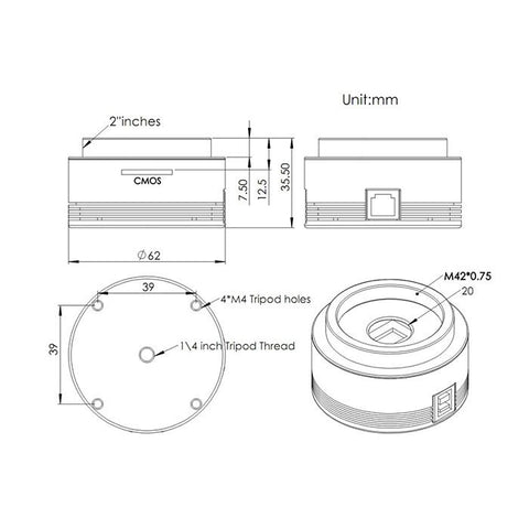 - Telescope connection: 2" nosepiece / 1.25" nosepiece / M42X0.75 female T thread