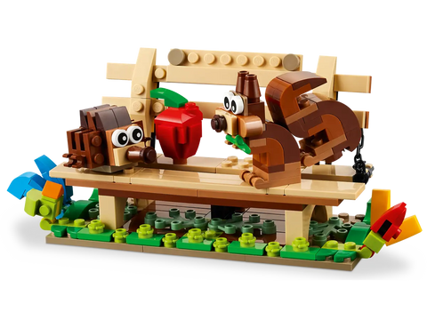 Kids will be thrilled to choose from 3 different buildable animal scenes with this LEGO 3in1 set. They can build a birdhouse with 5 birds, rebuild it into a hedgehog and squirrel sitting on apark bench or rebuild it into a beehive with 4 bees and honeycomb.