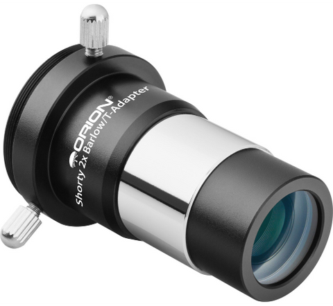 Whether used visually or for astrophotographic pursuits, the Orion 1.25" Shorty 2x Barlow Lens and Camera T-adapter will provide night after night of convenient, power-doubling performance.