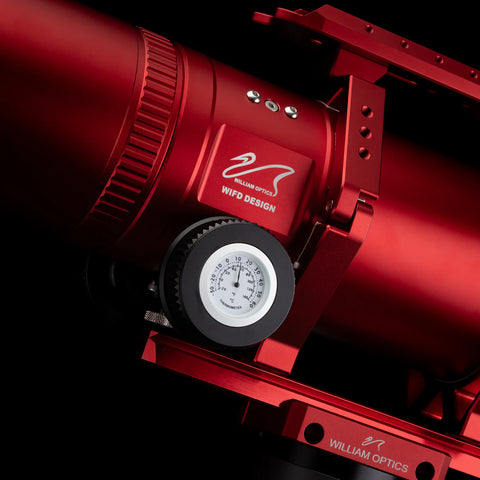 This new focuser design includes the patented William Optics center focuser with precise internal sliding of fixed optics to prevent image shift. The integrated position viewing window on the focuser provides instant verification of the graduated numerical display. The smooth rack-and-pinion design is incorporated into the focuser to provide super-fine adjustability for critical focus. The internal movement of the optical elements is protected from the elements and cannot come out of alignment. The redistribution of weight allows for better balance during imaging sessions.