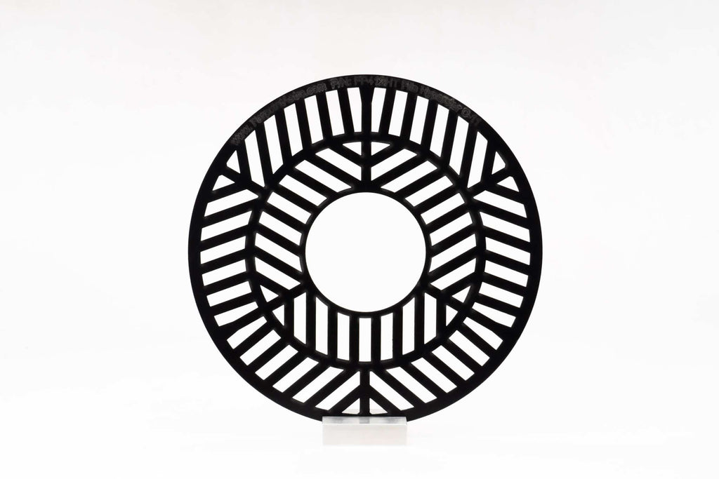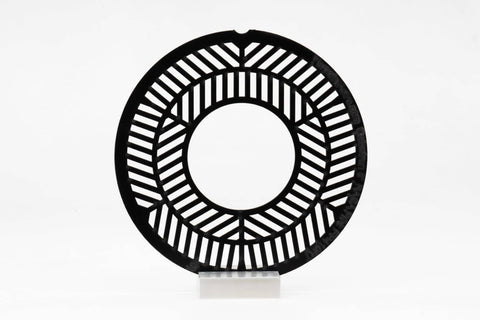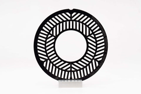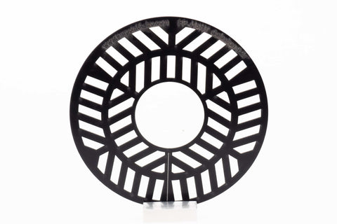 Essentially three Bahtinov masks in one, rotated over 120 degrees. It gives you three lines and three crosses to check focus and collimation, along three axis simultaneously.