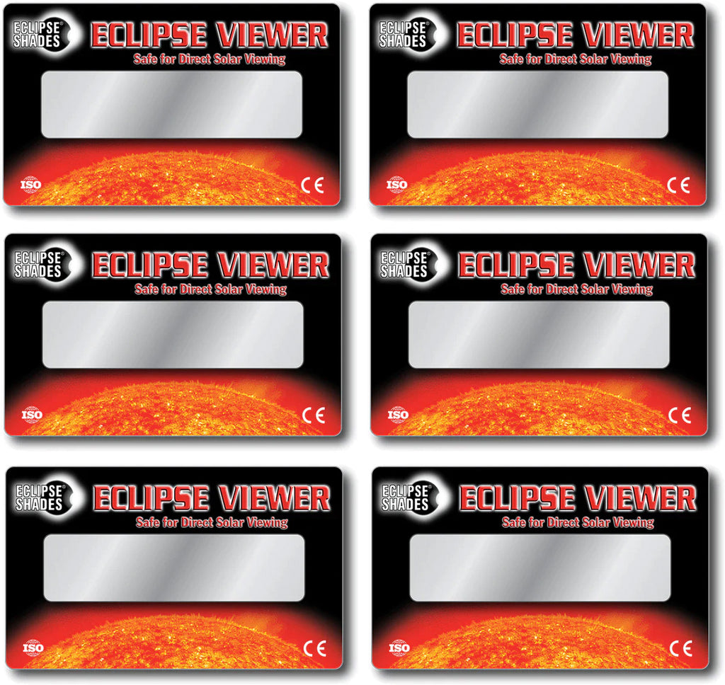 Designed as a handheld 3” X 5” card that features a 1” X 4” aperture, these paper eclipse viewers provide ultimate eye protection for solar events. They completely filter out harmful ultraviolet and infrared rays, as well as block 99.999% of intense visible light. The lenses are made from innovative, scratch-resistant “Black Polymer” material that has an optical density of 5.