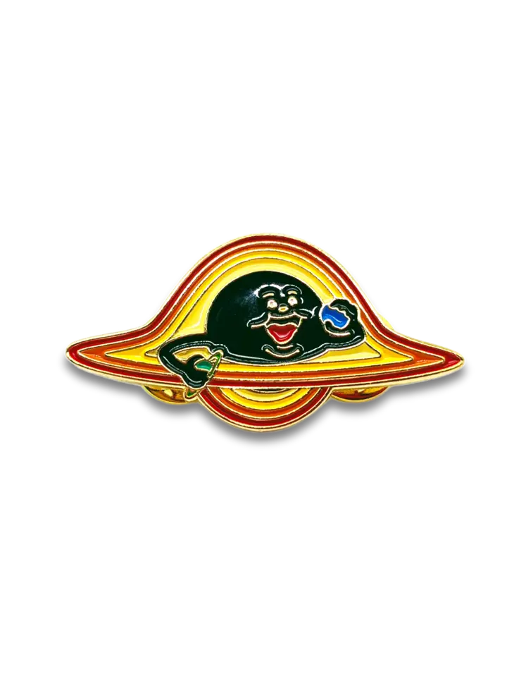 The Insatiable Black Hole pin is part of our Space Series and is based on original images and renderings from NASA... but with a funny twist.