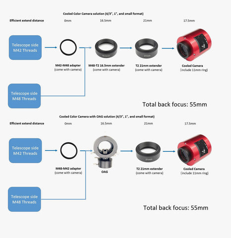 The 2-stage thermoelectric cooler can cool the CMOS sensor 35° below the ambient temperature (based on 30° ambient temperature test results), greatly reducing dark current and thereby improving the singal-to-noise ratio even with a long exposure of hundreds of seconds.