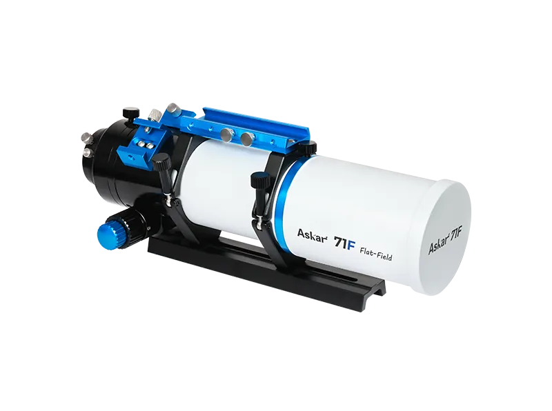 The Askar 71F is an OTA with an aperture of 71mm, a focal length of 490mm, and a native focal ratio of F6.9.