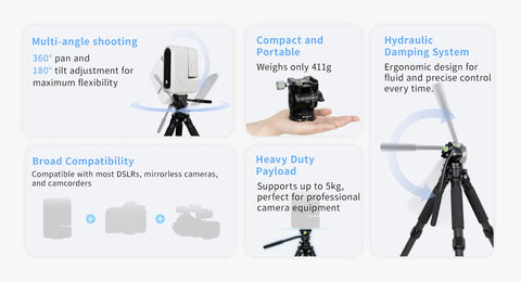 - Heavy Duty Payload: Supports up to 5kg, perfect for professional camera equipment