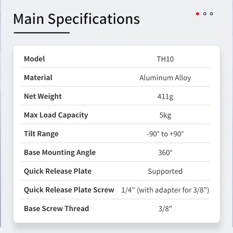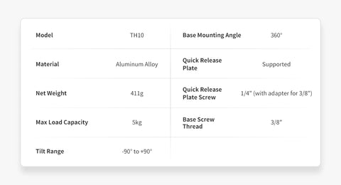 Made of durable full-metal construction, Seestar TH10 tripod head is compatible with most tripods and accessories on the market. It comes with a quick-release plate that supports both 3/8″ and 1/4″ screws, allowing for easy setup with a wide variety of devices.