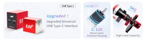 The EAF is an upgrade from the previous version, with its interface upgraded from Type-B to the more universal Type-C. Users can power the EAF directly via a Type-C connection to a camera, computer, or ASlAlR, it also supports wired communication via a Type-C interface. Simplifying cable management and reducing power load.