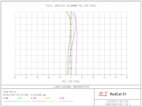 51 mm lens, in a sleek Petzval design, using Synthetic Fluoride (FPL53 and FPL51) glass for a full-frame flat field image. The optical quality provides exceptional performance at a fast focal ratio of f/4.9.