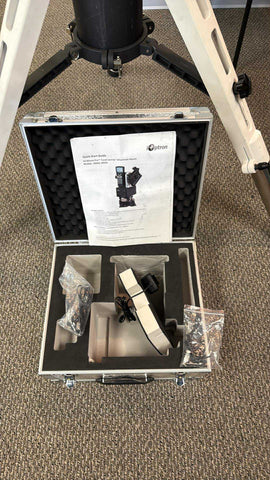 The mount head comes together with a white iOptron Tri-Pier in very good condition. It is definitely used, with multiple scruffs and some paint chips - see the photos. Unfortunately, the way this mount is constructed, these scuffs come naturally when the mount is being setup. However, it is perfectly functional. Comes with a padded case that fits the entire tri-pier when broken down.