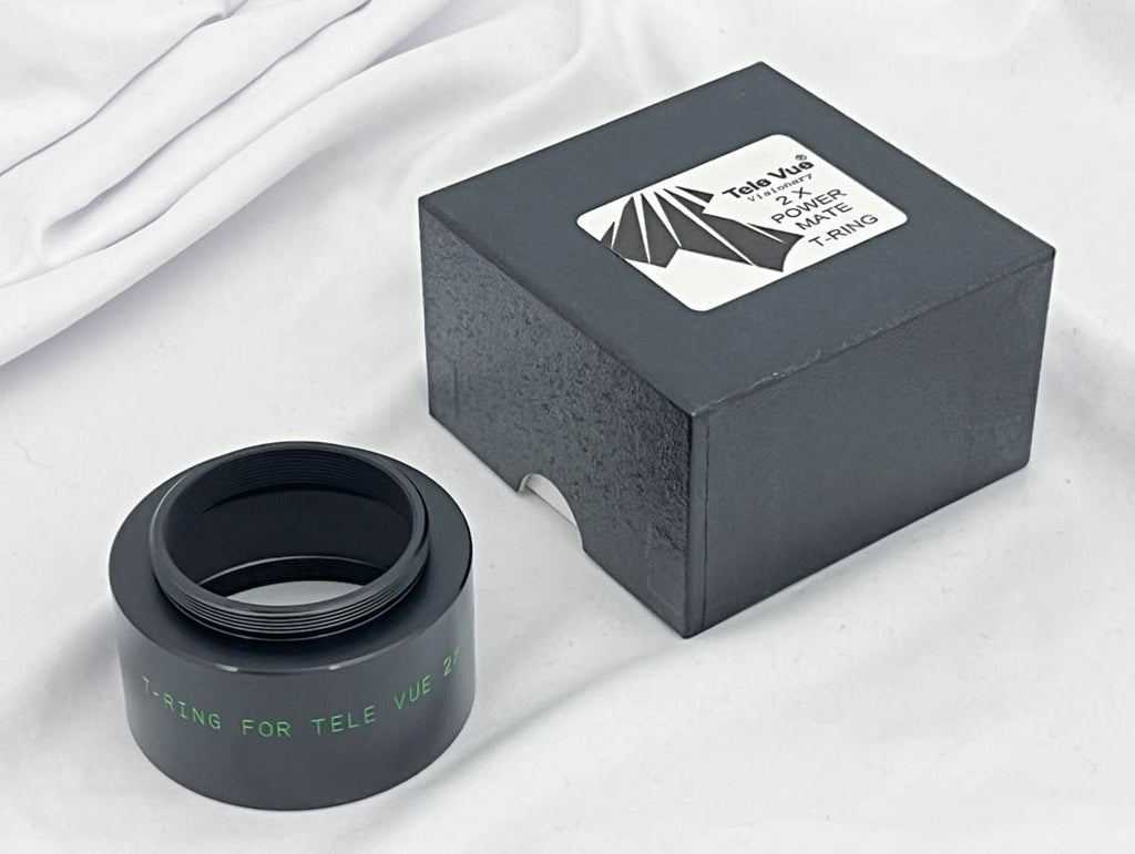 The Powermate T-ring adapters allow imaging through Powermate lens assemblies. Tele Vue T-Ring Adapter (PTR-2200) replaces the 2" eyepiece holder on the Tele Vue 2x Powermate (PMT-2200) with a 42mm (M42x0.75) male T-Ring thread for photography. Use of this adapter requires an additional M42 T ring for your specific camera (not included). Cannot be used with wide M48 T rings.