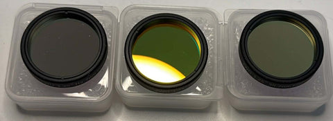 This is a set of three ZWO narrowband filters in the S-II, O-III, and H-a bands in excellent condition. The filters are clean and unmarked - any dust you see in the photos is electrostatically charged and attracted to the filters. They come in the jewel cases shown.