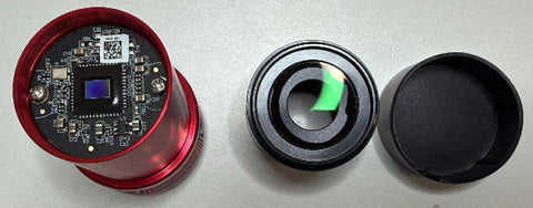The ASI 120MM Mini is a great first guide camera, with its high sensitivity, features, and low price. Like other cameras in ZWO's lineup of "Mini" models, it has a long barrel to allow easy positioning in a guidescope, like the nose of a regular eyepiece. This also allows a bit of extra adjustment for focus on your guidescope, as necessary.